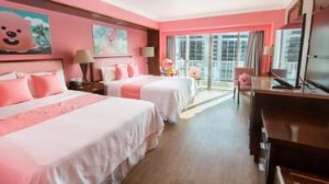 WESTIN RESORT GUAM① 웨스틴 잔망루피 패키지 오션뷰룸 (성인 2인1실 기준)② 잔망루피 패키지 오션뷰룸 위치 : 15F(오션뷰) ③ 차모르 잔망루피 리미티드 에디션 인형과 잔망루피 비치볼 제공 ④ 미스트 바에서 핑크 루피 목테일(무알콜) 2잔 제공 ⑤ 넓은 객실과 헤븐리베드의 퀸베드 2개 제공 (아동 NO BED)⑥ 구찌, 프라다, 루이비통 등의 명품 브랜드가 입점되어 있는 T갤러리아(면세점)까지 도보 10분