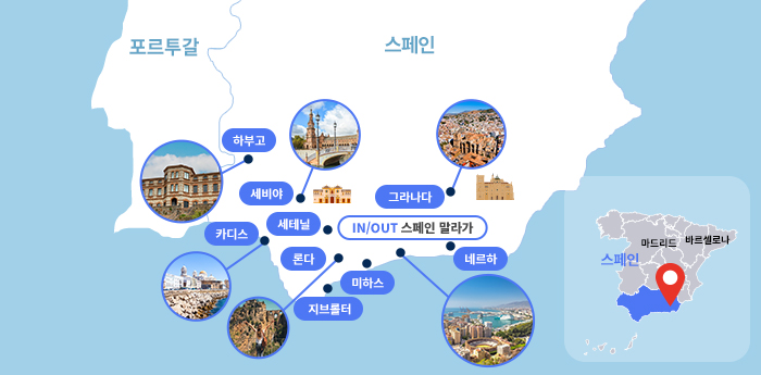 인천-말라가(1)-그라나다(2)-론다-세테닐-세비야(1)-하부고-아라세나-세비야(1)-카디스(1)-지브롤타-말라가(1)-기내(1)-인천