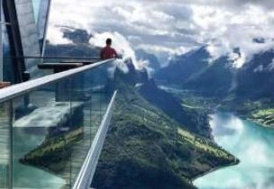 ▨ 호벤산 정상 1,011m까지 올라가 노드피오르의 전경을 감상하며 [로엔 스카이 리프트 탑승] ▣ 전용차량으로 브릭스달로 이동 (약 30분 소요) 브릭스달 도착하여 중식 후 관광